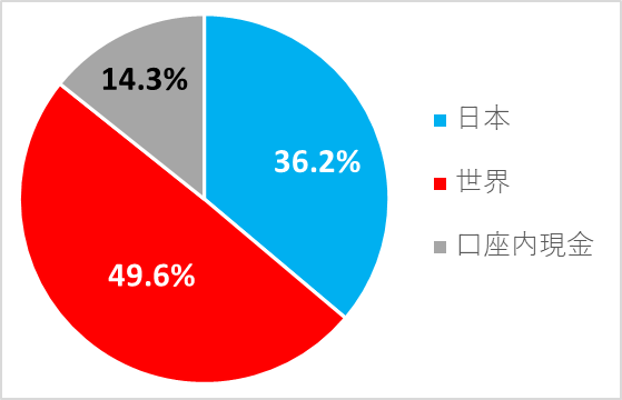 日本・世界・現金の比率は以下の通りです。